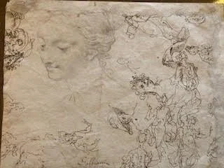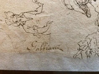 Signed drawing on one side of cream sheet by Gabbiani, a Baroque painter in the 17th c.